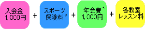 NPO法人 高崎スポーツクラブ(入会金とスポーツ保険料)に入会して、年会費1,000円と各教室・レッスンプログラムの料金を個別に別途各教室ごとにお支払いいただく参加方法です。